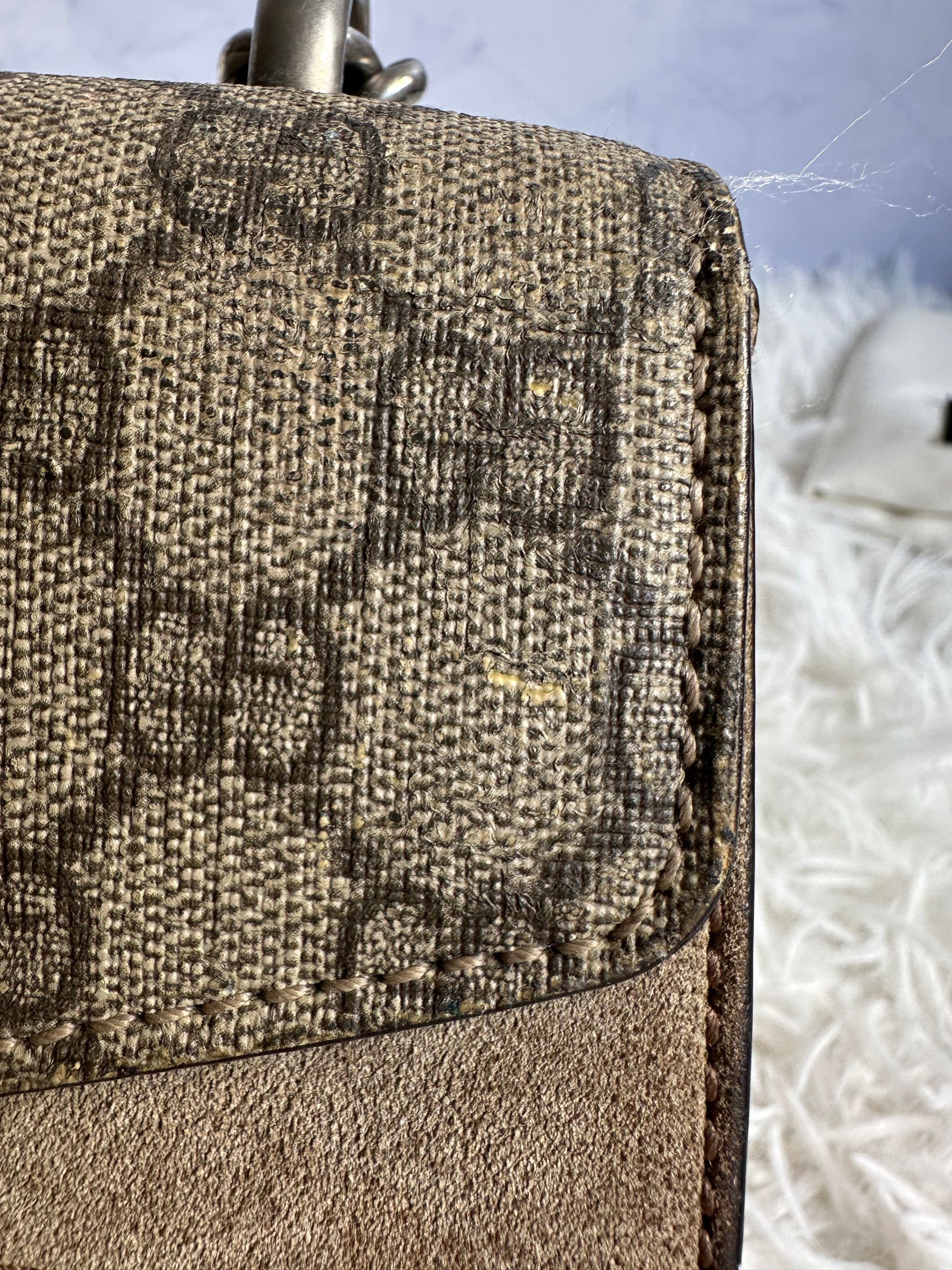 Inside is clean, suede has signs of use and small scratch as shown. It has light storage smell but overall not strong. Hardware is excellent condition.