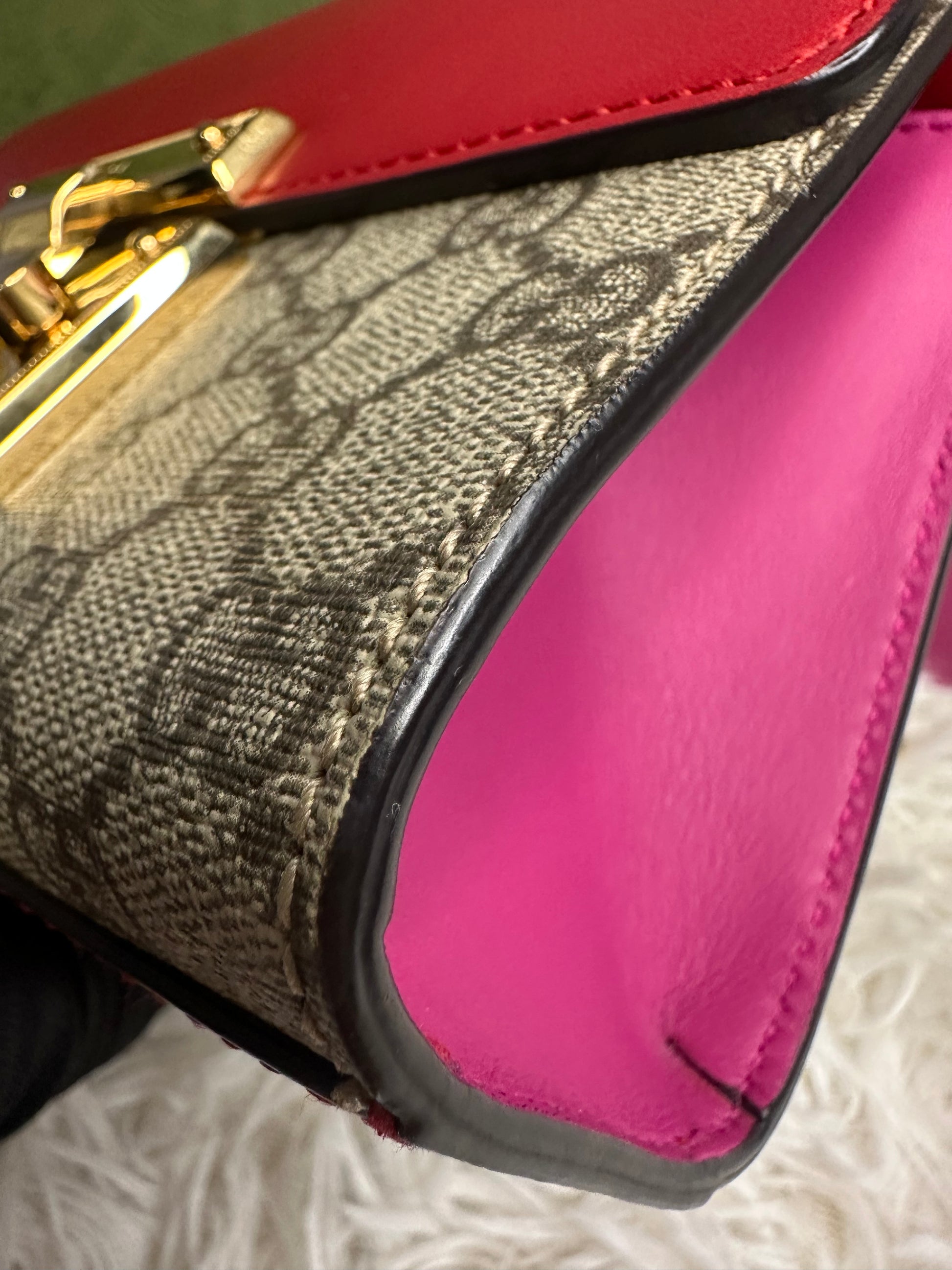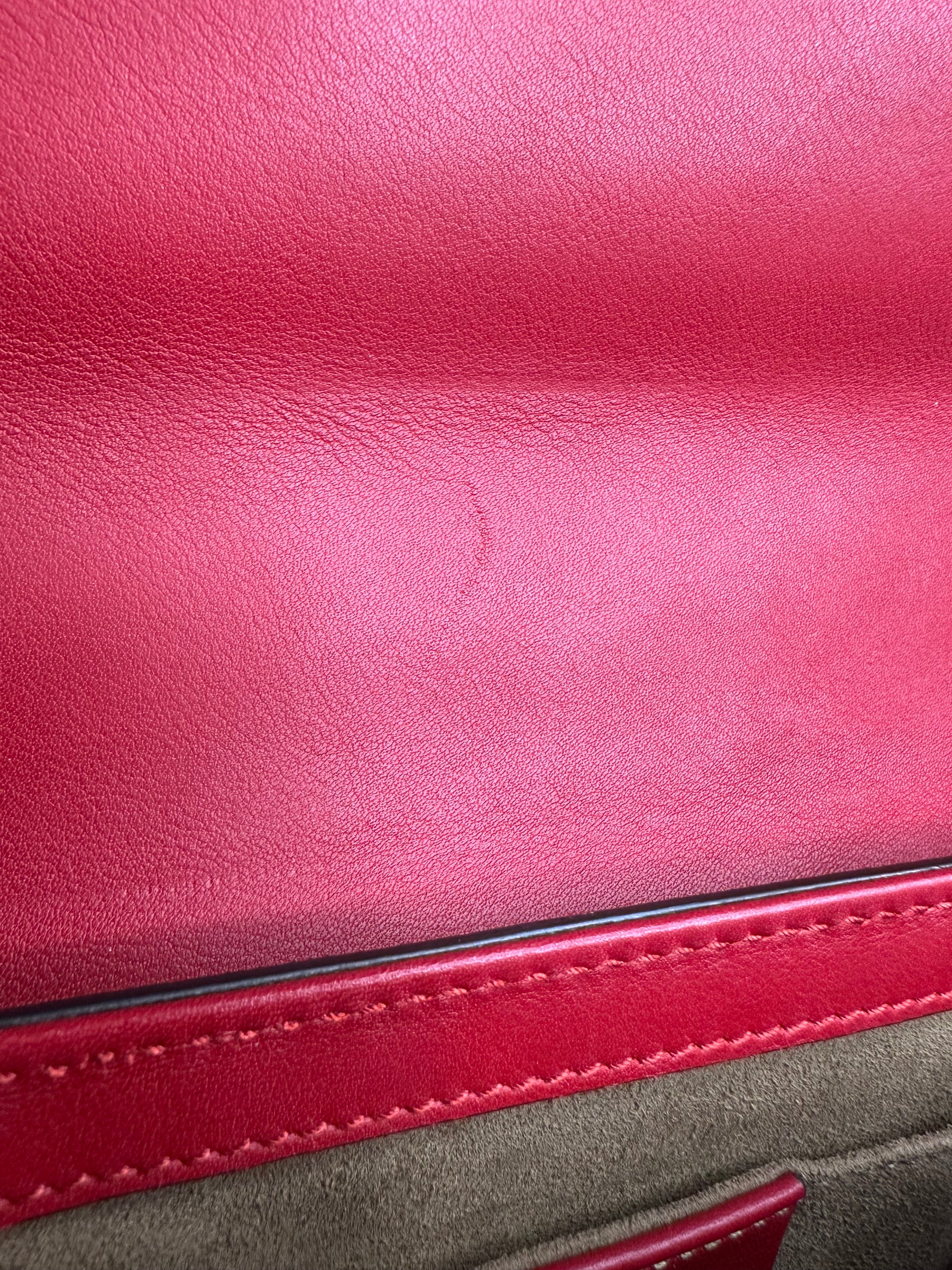 Only flaws to mention is light pressure mark at the back of the bag and light scratch inside the flap. Hardware still shiny and gold.